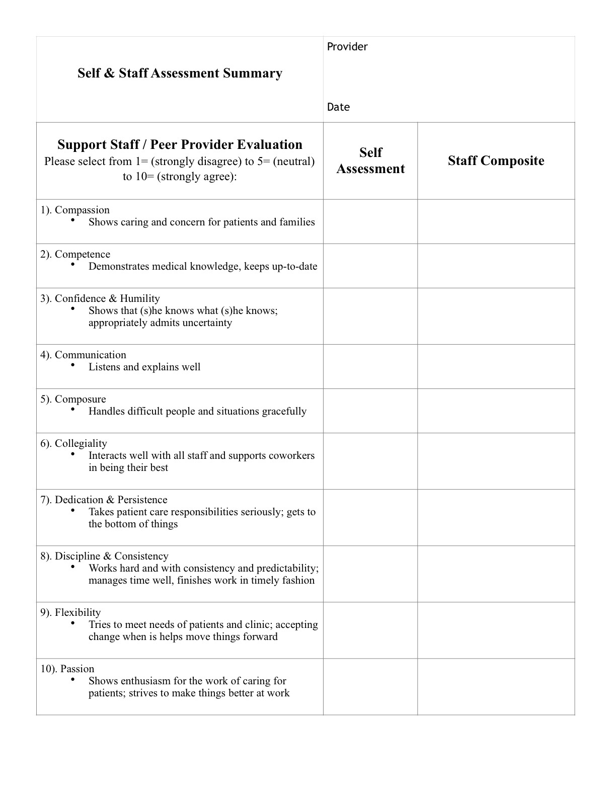 I guess, in a way, I wrote the provider self assessment as a yardstick for myself. It’s hard sometimes in today’s detail driven healthcare environment to remain focused on what it means to be a doctor.