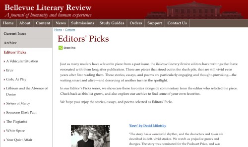 And then, of course, there is Bellevue Literary Review, edited by a frequent NYT contributor, Danielle Ofri , MD: