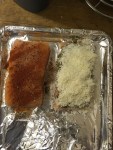 Last night I bought two salmon fillets, placed both on the foil covered tray for my toaster oven and spiced them up in two different ways for two meals: Salt, pepper and streaks of paprika (to simulate grill lines) on one and salt, pepper, pesto and a layer of Parmesan on the other. I turned the toaster oven to broil for 13 minutes and by the time my Caesar salad was done (from bagged hearts of romaine, bottled dressing, store bought croutons and some more Parmesan), the salmon was done.