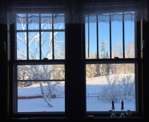 As I now finish writing this post on my white iPad screen, my eyes also take in the whiteness of the new snow on the trees and the red cedar fence of the horse pasture outside my bedroom window. It is a silent, sunny Sunday morning.