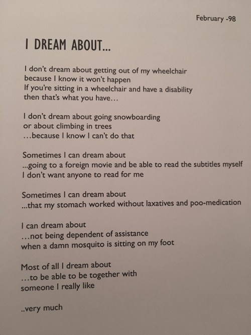 She sent me two copies, one in Swedish and one in English. I was very touched, by what she told me about her son, how she and her husband have supported him and by the content of the book.