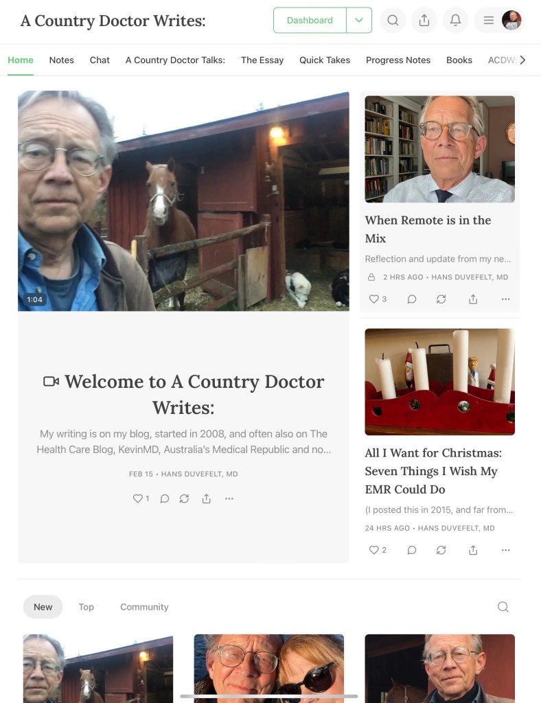 So, I could choose a new theme, but that means my masthead would have to have different proportions and all kinds of similar fuss…and the viewership on a day to day basis is multiples more on Substack. Plus I even get occasional paid subscriptions (in case I eventually decide to slow down in my clinical work).
